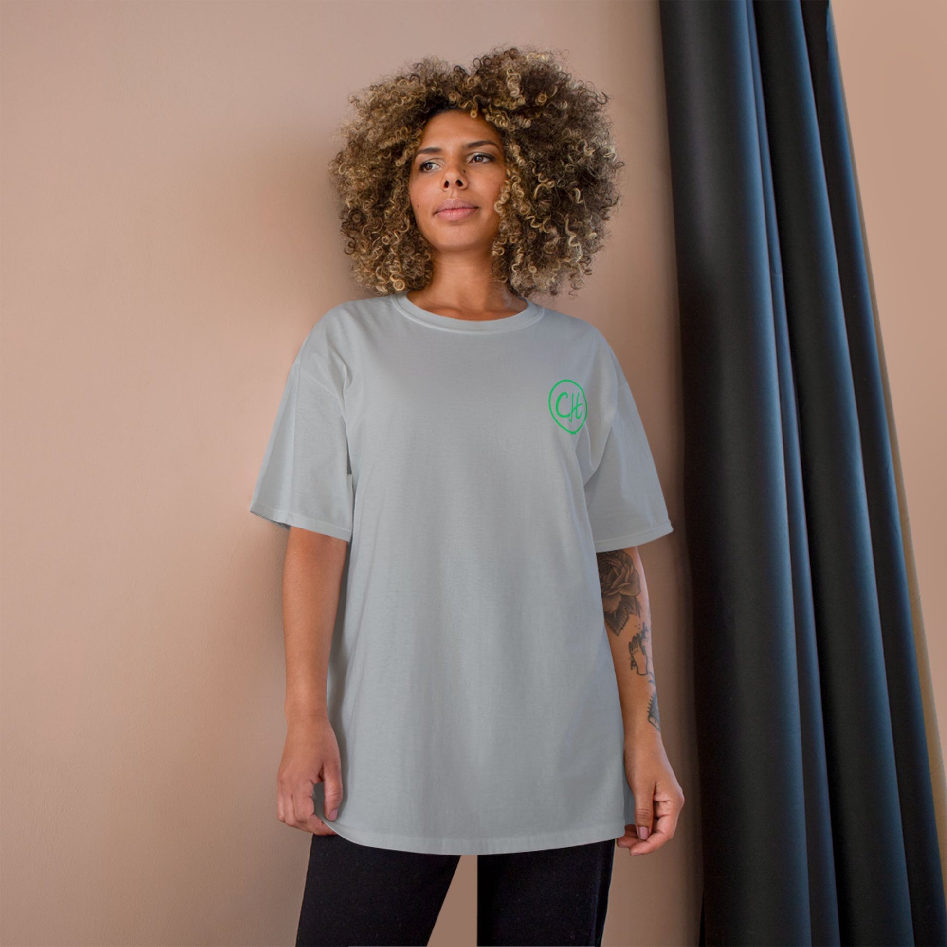 The heritage brand known for quality, Champion, produces this customization-oriented, short-sleeve unisex t-shirt. This Champion t-shirt has the iconic Champion "C" logo on the left sleeve and no tag on the neck label. It is a lightweight, classic fit tee made of 100% ring spun cotton. Add it to your store today.